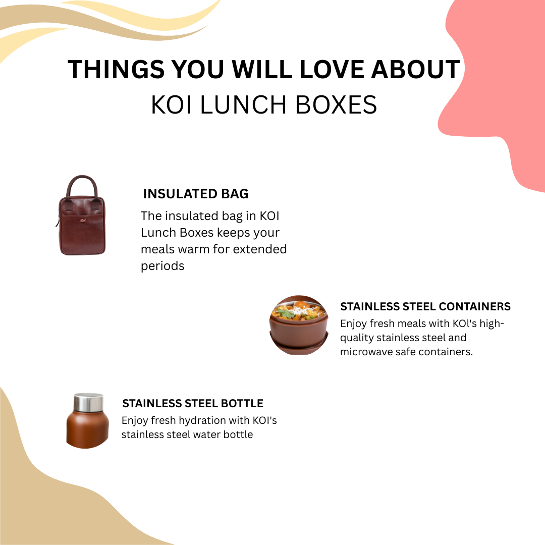 Durability and Style: Crafted from high-quality PVC, the KOI Lunch Bag is not only designed for practicality but also for durability. Its sturdy build withstands daily use, ensuring longevity for everyday office commutes. For men who appreciate sturdy, stylish accessories, this bag doubles as an attractive tiffin bag for office men with its sleek, polished look.
