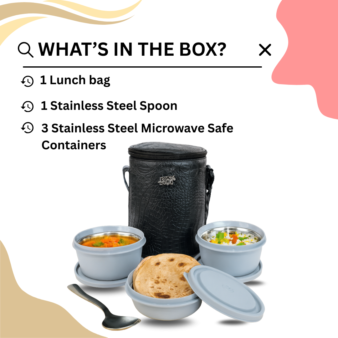 KOI TiffinPro Stainless Steel Leak-Proof Lunch Box Set Black And Grey